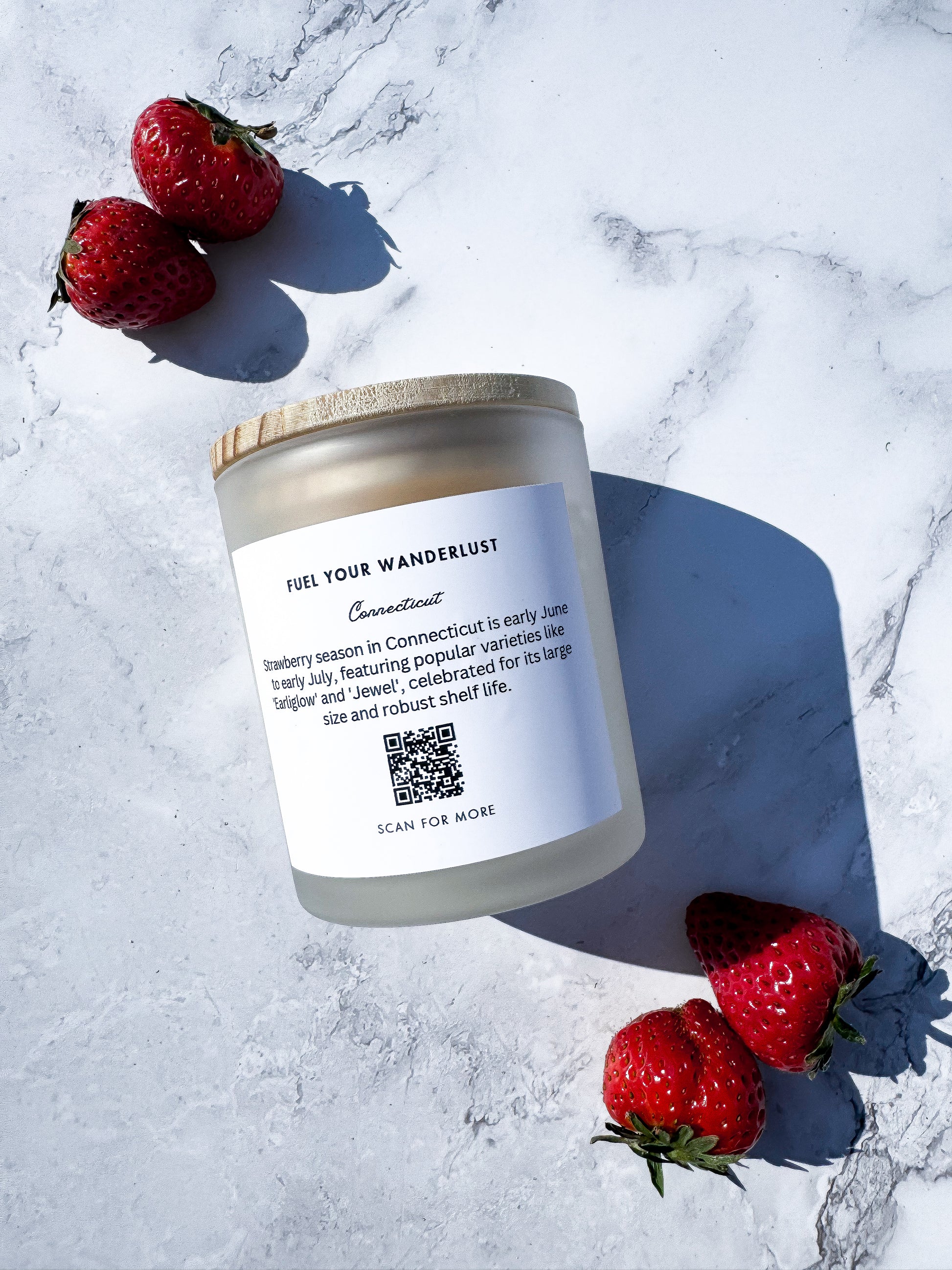 Celebrate the simple pleasures of summer with our "Connecticut Strawberries" candle. Inspired by the delightful experience of picking strawberries at Jones' Farm in Shelton, CT, this candle captures the essence of a classic summer dessert: strawberries and cream. Connecticut, with its charming farms and beautiful landscapes, is renowned for its fresh, juicy strawberries that make summer truly special.